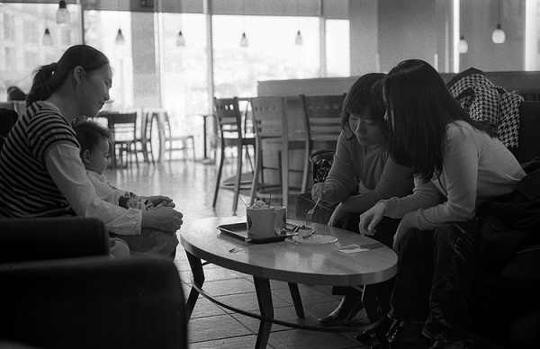 자리를 잡고 커피를 마시고 있는데, 옆 좌석에 젊은 아기 엄마 세사람이 와 앉았습니다.
