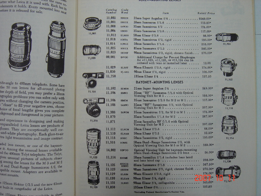 지금은 118만원 248만원으로 약 2배 정도인데 당시는 3배 이상으로 Summilux가 비쌌네요.