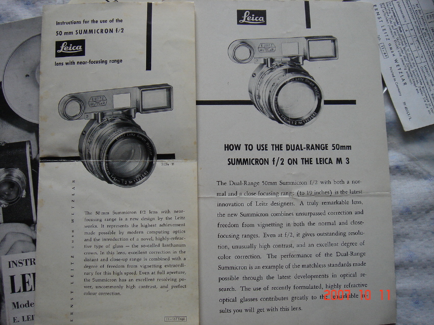 R렌즈의 가격은 Summicron이 8만엔 Summilux가 29만 5천엔