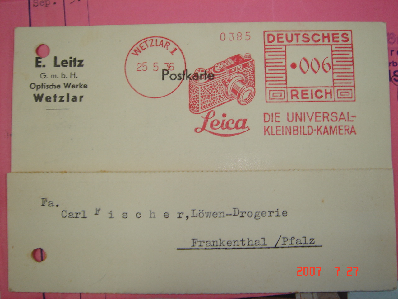 1936년 5월25일날 라이카에서 보낸 엽서도 그런내용인것 같고요..