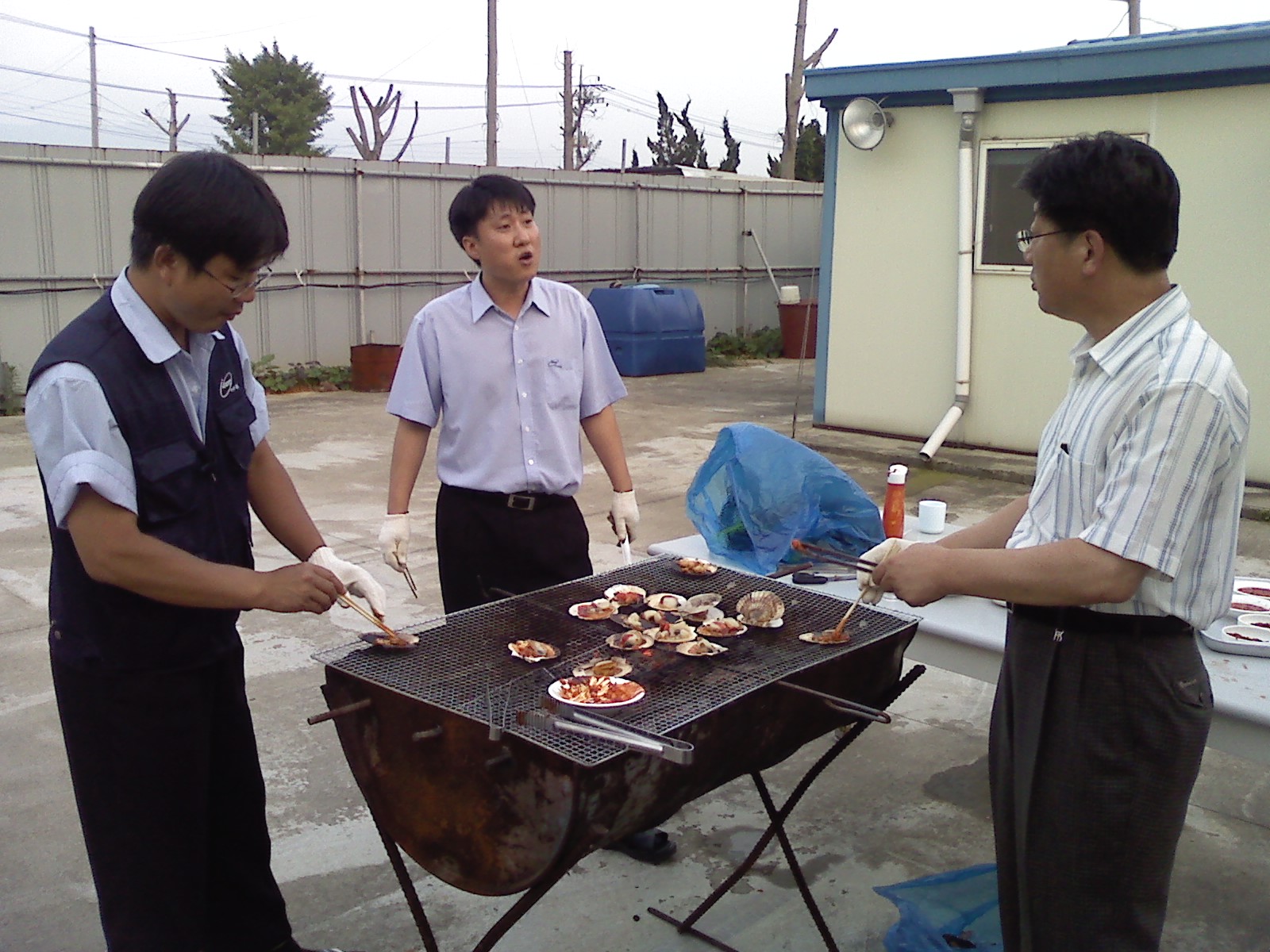 어?!. 서해안 번개출사 때 공수(?)해온 바베큐 드럼통, 드럼통위에서 익어가는 가리비와 박영주님의 냉면과 잘 맞아 떨어집니다.