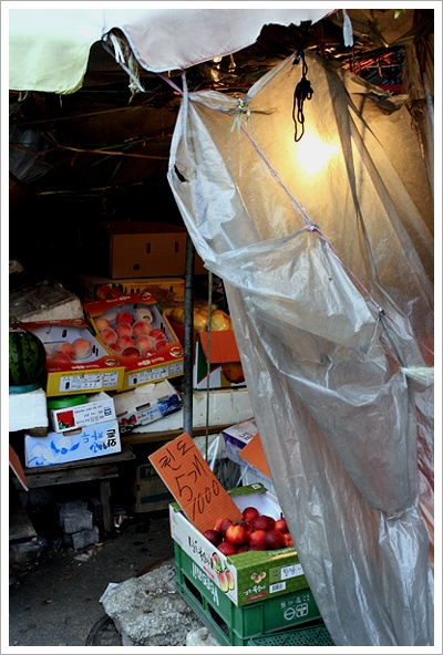 먹고 막 나서는데, 재래식 과일 가게가 눈에 띄이더군요.