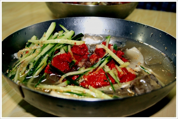 저는 부산에서 배운 회냉면이라