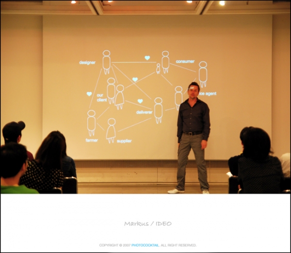 Screen을 잘 보세요.... designer 와 그 주변의 사람들 사이에 Love Mark가 보이시나여 ? 사람을 진정으로 이해하고 사랑할 수 있어야 한다는 말입니다.. 프로젝트의 유저리서치 대상자로 제가 선정되어 몇가지 질문들에 답변을 작성했었답니다... 이런 질문이 있더군요... '늘 가지고 다니는 물건에 대한 저의 생각들을 이미지와 느낌으로 표현하라' 여러 가지 물건들 중 D80이라는 놈을 늘 한 몸처럼 들고 다니기에 ... (가끔은 product designer가 아닌 photographer로 오해 하시는 분들도 있죠 )사진에 관한 저의 느낌을 표현했었드랬죠.... "사진을 찍는다는 행위는, 사진을 찍히는 객체에 대한 찍는 이의 진솔한 사랑을 담은 온몸으로하는 대화이다." 그래서.. 제 생각엔... 'photographer' ㄷ ㅗ 'designer' ㄷ ㅏ 그냥 사진 업데이트하다가 잡생각이나서... 그럼 모두 편안한 주말 밤 되세요.. : |