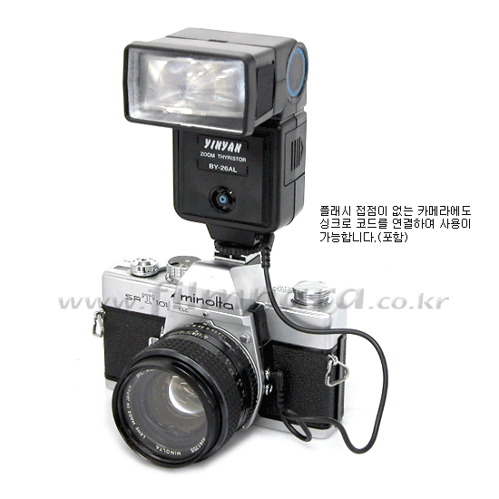 필름나라 검색해보니 아래의 인얀 플래시가 있는데 모든 수동카메라, 플래시 접점이 없어도 내장된 케이블을 이용하여 된다고 하네요.