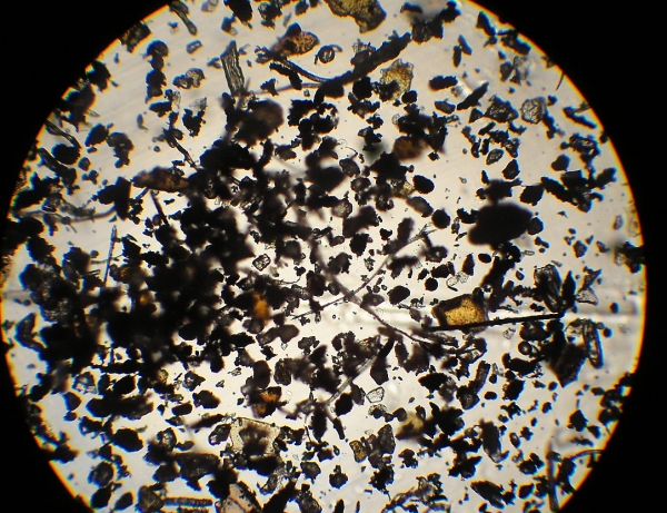 이상한 생각에 현미경으로 100배정도로 확대해보았다...이건 먼지가 아니라 모래수준이