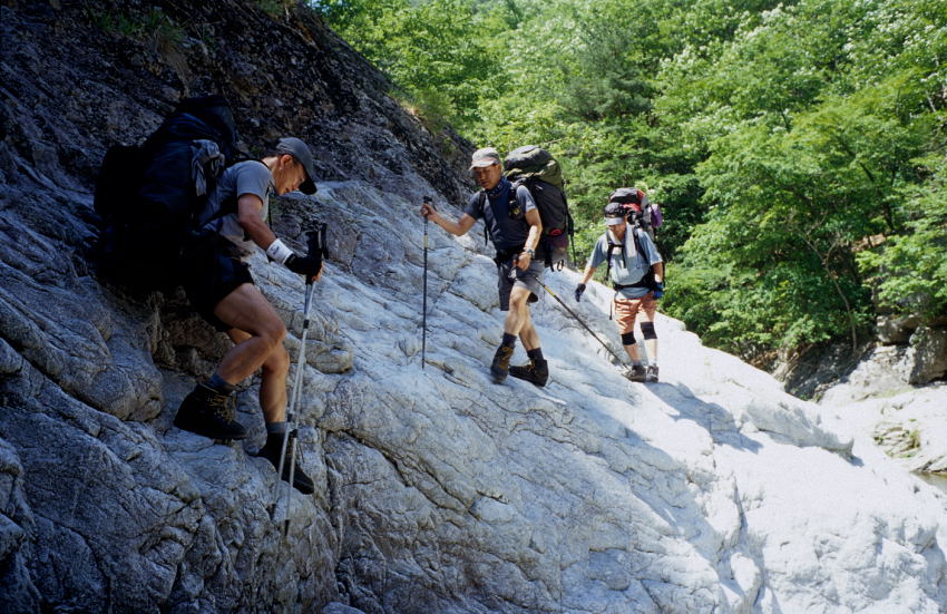 맨 뒤에 스틱 안 들고 배 나오신 아저씨는 비박 처음 오신 분이십니다.