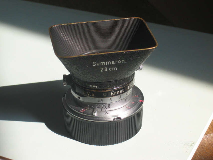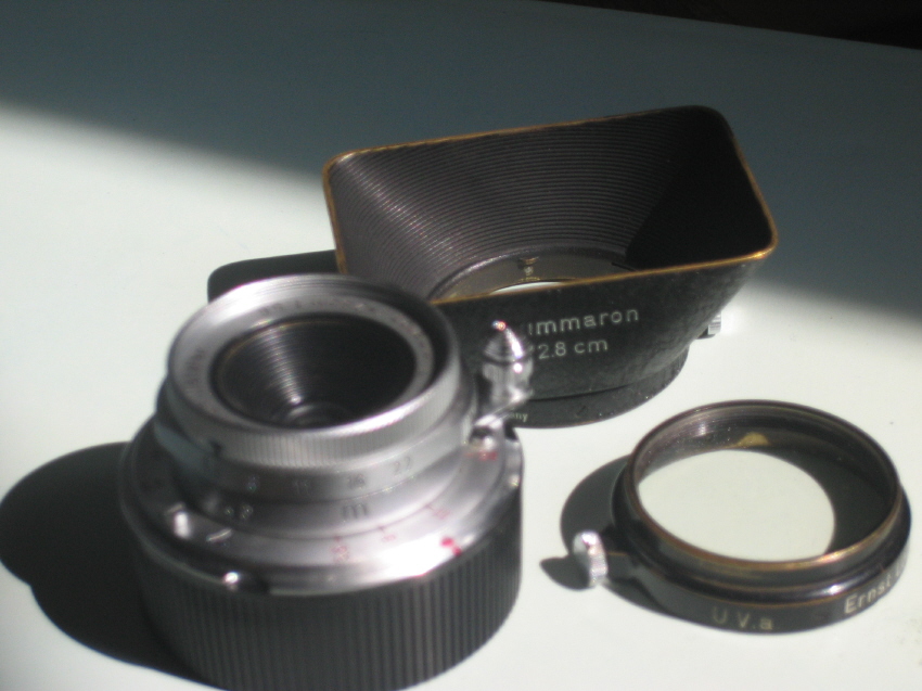 후드와 필터 없이 앞 뒤 캡만 있었지만 기회가 또 언제 있을지 모르니 우선 상태 좋은 렌즈만이라도 확보해 놓고 보자는 급한 생각이 들었습니다. 군대 선착순 실력을 발휘해서 재빨리 1번으로 줄을 서서 거금 120에 Summaron f=2.8cm 1:5.6을 지난 07,19날 성공적으로 입양했습니다. 시리얼 넘버가 없는 렌즈입니다.