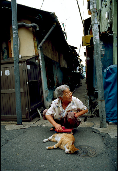 - 설명도둑 고양이 주제에 아주 호강이다. 할머니가 붙들어 놓고정성스래 빗질을 해주신다..