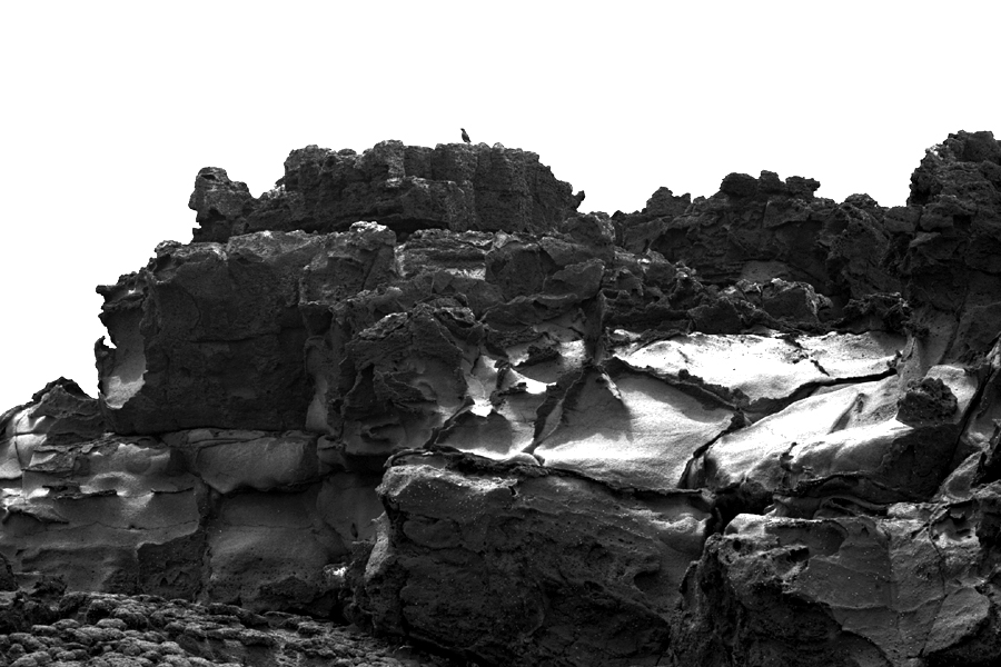 거대한 괴암 위에 앉아있는 한마리 작은 물새...