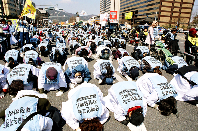 - 설명장애우인권집회. 종합청사에서 시청지나 인권위원회까지. 3월 30일오후
