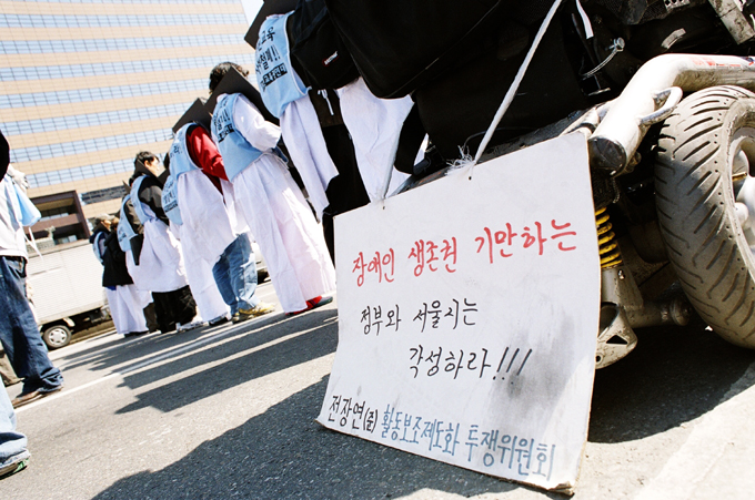 - 설명휠체어뒤의 구호문