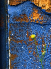 노란 꽃과 푸른 벽