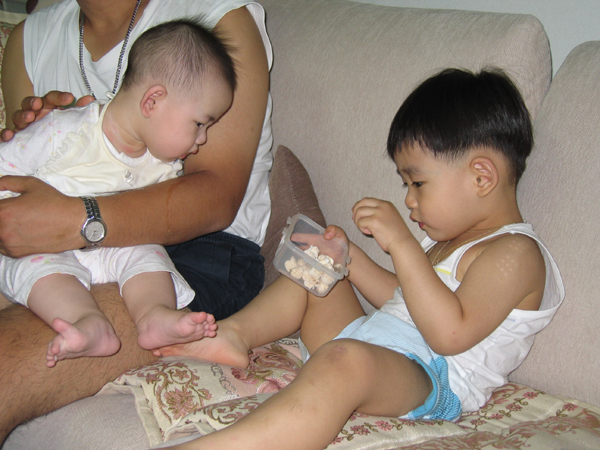 - 설명아들놈이 강냉이 먹고 있는걸 6달된 딸래미(ㅎㅎ 아들 같지만)가