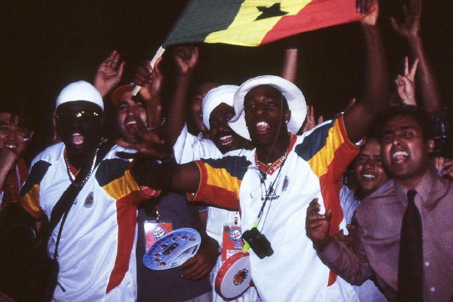 시작되었다. 세네갈 응원단이 상암경기장 밖을 나오며 환호하고 있다.