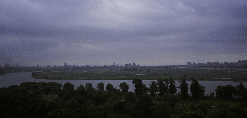 - 설명만경봉에서 평양 시내쪽으로 바라본 모습. 왼쪽에 쌍둥이 빌딩은 고려호텔이다.