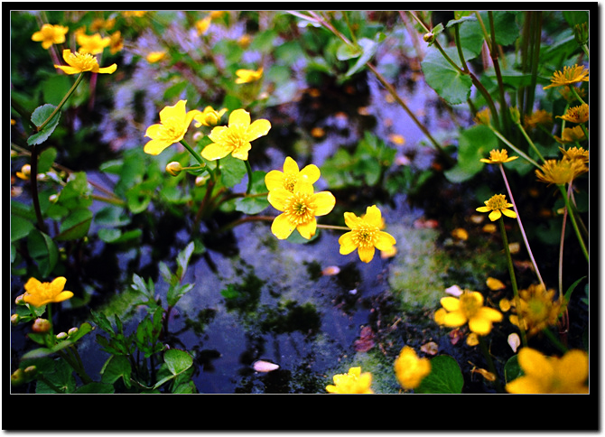 비교적 깊은 산속의 개울가 얕은 물속이나 물가에서 자라는 동의나물이라 불리는 야생화입니다.