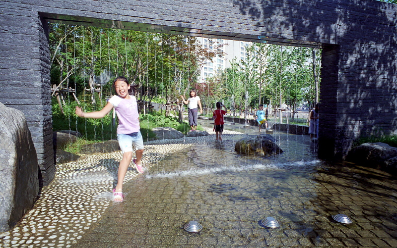 흐르는 물줄기 사이로 빠져나오는 아이...