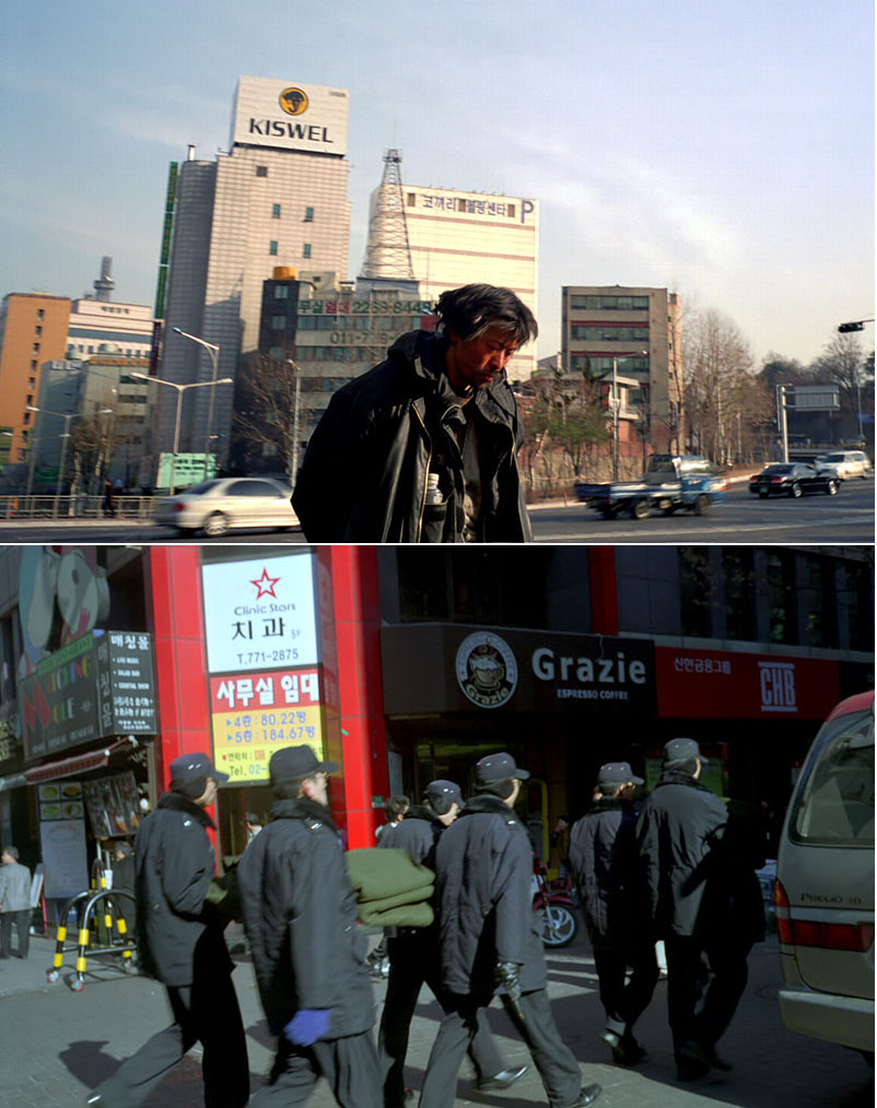 그저께 찍고 어제 명동 시위현장에서 조금떨어진 곳에서 다시 보았다 저모습은 그래도 양호한데 어제의 모습은 날씨가 무척이도 추운데 얼굴이 이미 동상이 걸린듯한 모습인었다. 그러나 내가 할수 있는일은 그냥보고 가엽고 불쌍한 생각왜엔 할것이 없어 가슴이 찡했다. 그리고 보이지 않을때까지 보고만 있었다.