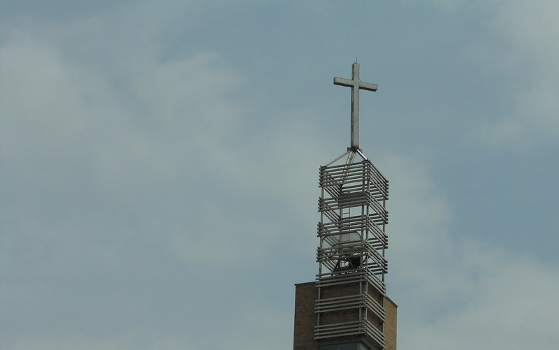 한동안 확성기의 유닛의 소리만 들렸는데..두리번 그리다 힘차게울리는교회종탑을 보았다..