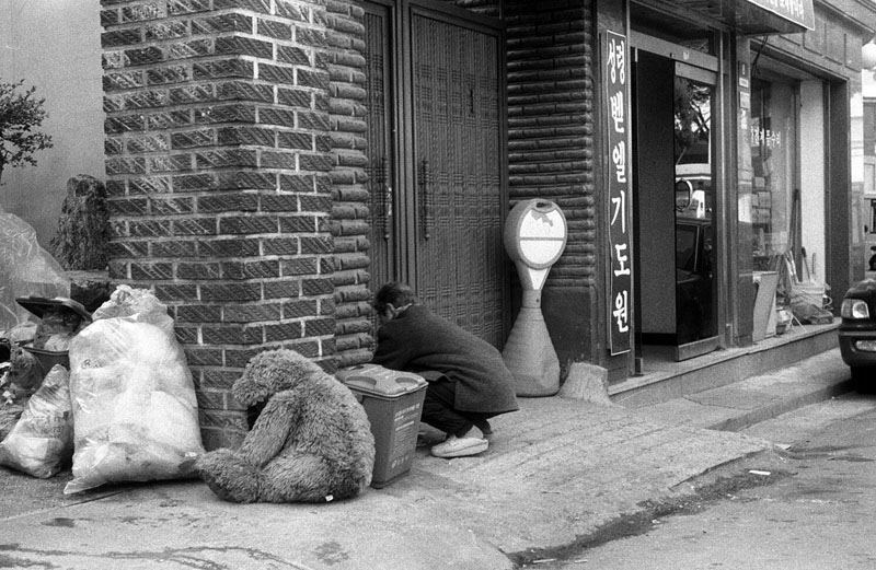 좌우 양끝의 쓰레기 봉투와 안전표지판이 또 흡사한 느낌을 줍니다.
