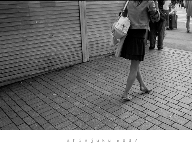 걸음걸이에서 팽팽한 긴장감이 느껴집니다. 신주쿠라고 모든 사람들이 다 아무생각 없이 거리를 헤메이고 다니는 건 아니겠지요...^^ 그래도 만화를 많이 봐서인지, 저 커다란 가방속에 뭐가 들었을까 궁금해지는건 어쩔 수 없네요.