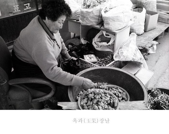 생강을 잔뜩 가지고 나오셨네요. 아주머니 얼굴에 옅지만 부드러운 미소가 보입니다.