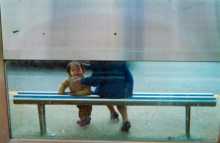 버스정류장에서의 아이.