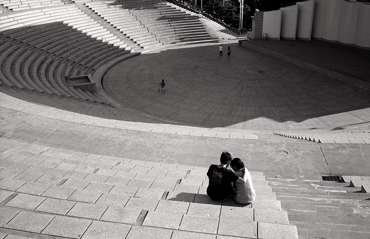그래도 좀 뜸한 장소에서 저렇게 붙어 있는건 나아보입니다. 지하철 안에서도 딱 붙어 있는 건 좀 그렇더만..ㅎㅎ