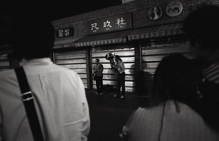 인사동 늦은 밤에 특근하는 두 사람...