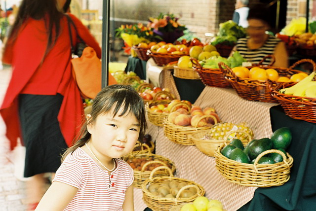 싱싱한 과일가게 과일같이 복스런 꼬마아가씨의 야무진 표정이 좋읍니다.