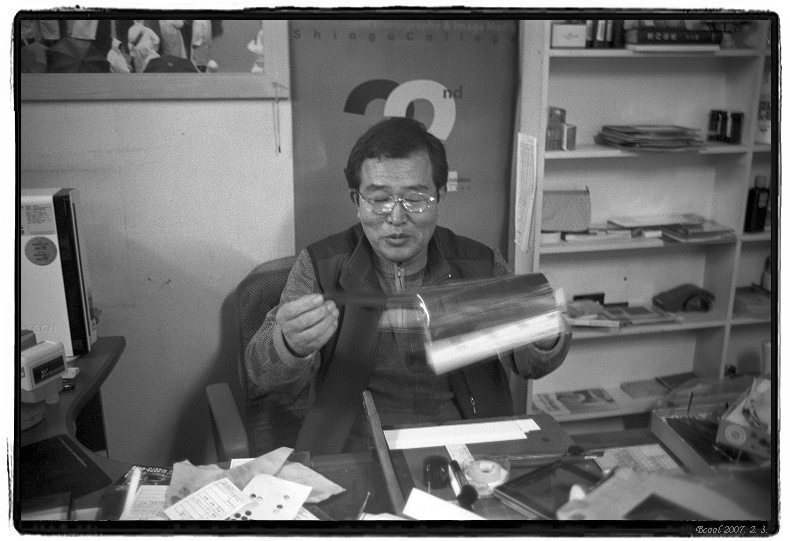 미소를 지으시며 필름을 끼워 넣으시는 모습이 인상적입니다.