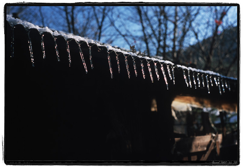 곽성해님의 댓글 곽성해 07-11-26 17:35 어제 이은 고드름 2탄이신가 봅니다 아 겨울이네요... 옆구리가 썰렁한게... 좋은 사진 잘 감상하였습니다 어제 이은 고드름 2탄이신가 봅니다<br /> 아 겨울이네요... 옆구리가 썰렁한게...<br /> 좋은 사진 잘 감상하였습니다 이인한님의 댓글 이인한 07-11-26 18:29 고드름을 본게 언제인가....., 그리운 풍경입니다. 좋은 사진 잘 보았습니다. 고드름을 본게 언제인가....., 그리운 풍경입니다.<br /> 좋은 사진 잘 보았습니다. 문대찬님의 댓글 문대찬 07-11-26 23:25 옛날에 저거 하나 부러트려서 하나씩 빨던 기억이 나네요... 보기 힘든사진이네요 ^^ 옛날에 저거 하나 부러트려서 하나씩 빨던 기억이 나네요...<br /> <br /> 보기 힘든사진이네요 ^^ 추천 회원목록 추천하기 닫기 쪽지보내기 전송 닫기 개인정보처리방침 “라이카클럽“(이하 “회사”)는 개인정보보호법에 따라 이용자의 개인정보 보호 및 권익을 보호하고 개인정보와 관련한 이용자의 고충을 원활하게 처리할 수 있도록 다음과 같은 처리방침을 두고 있습니다. 고객님의 정보는 개인의 소중한 자산인 동시에 회사 운영의 중요한 자료가 됩니다. 그러므로 회사는 운영상의 모든 과정에서 고객님의 개인정보를 보호하는데 최선의 노력을 다할 것을 약속 드립니다. 회사는 개인정보처리방침을 개정하는 경우 웹사이트를 통하여 공지할 것입니다. 제 1장. 개인정보 수집 동의절차 회사는 귀하께서 웹사이트의 개인정보보호방침 또는 이용약관의 내용에 대해 (동의한다)버튼 또는 (동의하지 않는다)버튼을 클릭할 수 있는 절차를 마련하여 (동의한다)버튼을 클릭하면 개인정보 수집에 대해 동의한 것으로 봅니다. 제 2장. 개인정보의 수집 및 이용 목적 회사는 개인정보를 다음의 목적을 위해 활용합니다. 처리한 개인정보는 다음의 목적 이외의 용도로는 사용되지 않으며 이용 목적이 변경될 시 사전동의를 구할 예정입니다. 가. 성명, 아이디, 비밀번호 : 회원 가입의사 확인, 서비스 부정이용 방지, 접속 빈도파악, 회원제 서비스 이용에 따른 본인 식별 절차 나. 이메일주소, 전화번호(수신여부 확인) : 고지사항 전달, 본인 의사 확인, 불만 처리 등 원활한 의사소통 경로의 확보, 이벤트 및 광고성 정보 제공 및 참여기회 제공, 접속 빈도파악 또는 회원의 서비스이용에 대한 통계 다. 주소, 전화번호 : 경품과 물품 배송에 대한 정확한 배송지의 확보 제 3장. 광고정보의 전송 가. 회사는 귀하의 명시적인 수신거부의사에 반하여 영리목적의 광고성 정보를 전송하지 않습니다. 나. 회사는 약관변경, 기타 서비스 이용에 관한 변경사항, 새로운 서비스/신상품이나 이벤트 정보, 기타 상품정보 등을 전자우편, 휴대폰 문자전송 기타 전지적 전송매체 등의 방법으로 알려드립니다. 이 경우 관련 법령상 명시사항 및 명시방법을 준수합니다. 다. 회사는 상품정보 안내 등 온라인 마케팅을 위해 광고성 정보를 전자우편 등으로 전송하는 경우 전자 우편의 제목란 및 본문란에 귀하가 쉽게 알아 볼 수 있도록 조치합니다. 제 4장. 개인정보의 수집범위 회사는 별도의 회원가입 절차 없이 대부분의 콘텐츠에 자유롭게 접근할 수 있습니다. 회원제 서비스를 이용하고자 할 경우 다음의 정보를 입력해주셔야 합니다. 가. 개인정보 수집항목 : 이름, 이메일, 생년월일, 아이디, 비밀번호, 성별, 주소, 휴대폰 번호(전화), 이메일 수신여부, SMS 수신여부, 서비스 이용기록, 접속로그, 받는 고객 정보(이름, 전화번호, 주소, 이메일) 나. 개인정보 수집방법 : 홈페이지 내 회원가입 및 게시판 등 제 5장. 개인정보의 보유 및 이용기간 회사는 개인정보 수집 및 이용목적이 달성된 후에는 해당 정보를 지체 없이 파기합니다. 단, 다음의 정보에 대해서는 아래의 이유로 명시한 기간 동안 보존합니다. -보존항목 : 이름, 로그인 ID, 비밀번호, 이메일, 생년월일 -보존근거 : 불량 회원의 부정한 이용의 재발 방지 -보존기간 : 1개월 그리고 관계법령의 규정에 의하여 보존할 필요가 있는 경우 회사는 아래와 같이 관계법령에서 정한 일정한 기간 동안 회원정보를 보관합니다. 소비자의 불만 또는 분쟁처리에 관한 기록 : 3년 (전자상거래 등에서의 소비자보호에 관한 법률) 제 6장. 개인정보의 파기 절차 및 방법 회사는 원칙적으로 개인정보 처리목적이 달성된 경우에는 지체 없이 해당 개인정보를 파기합니다. 파기의 절차, 기한 및 방법은 다음과 같습니다. -파기절차 회원님이 회원가입 등을 위해 입력하신 정보는 목적 달성 후 별도의 DB로 옮겨져(종이의 경우 별도의 서류함) 내부 방침 및 기타 관련 법령에 의한 정보보호 사유에 따라(보유 및 이용기간 참조) 일정 기간 저장 된 후 파기합니다. 별도 DB로 옮겨진 개인정보는 법률에 의한 경우가 아니고서는 보유 이외의 다른 목적으로 이용되지 않습니다. -파기기한 이용자의 개인정보는 개인정보의 보유기간이 경과된 경우에는 보유기간의 종료일로부터 5일 이내에, 개인정보의 처리 목적 달성, 해당 서비스의 폐지, 사업의 종료 등 그 개인정보가 불필요하게 되었을 때에는 개인정보의 처리가 불필요한 것으로 인정되는 날로부