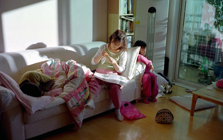 십자수 하는 아내.
