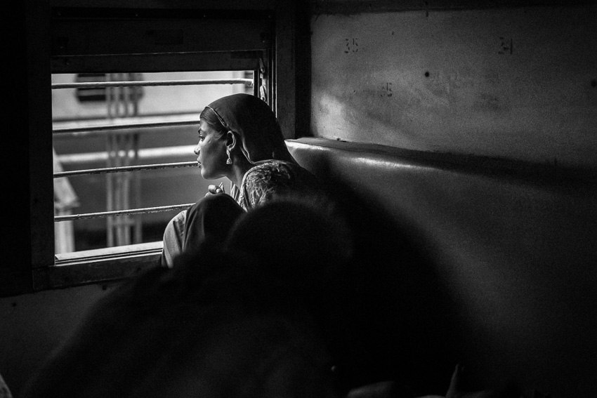 차창 너머로 던지는 호기심 서린 여인의 시선,