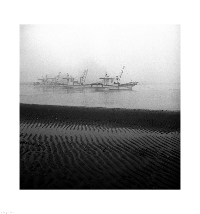 개펄의 파도문양과 어선의 배치가,,