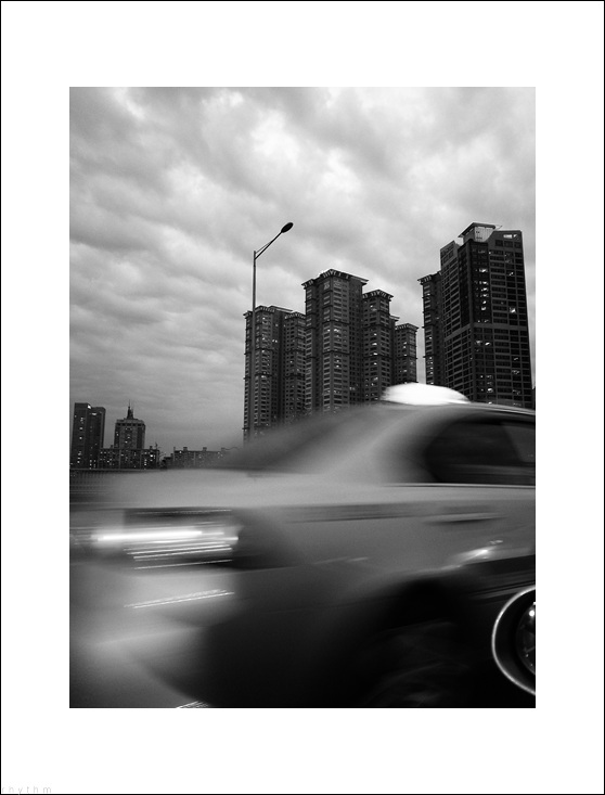 질주하는 택시와 고층건물 ,,
