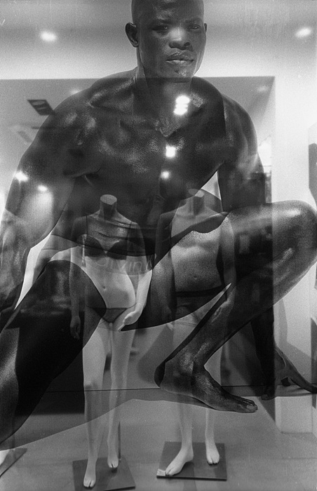 흑인모델 그리고 여성 마네킹(백인) 그리고 그 옆의 남성 마네킹(백인)