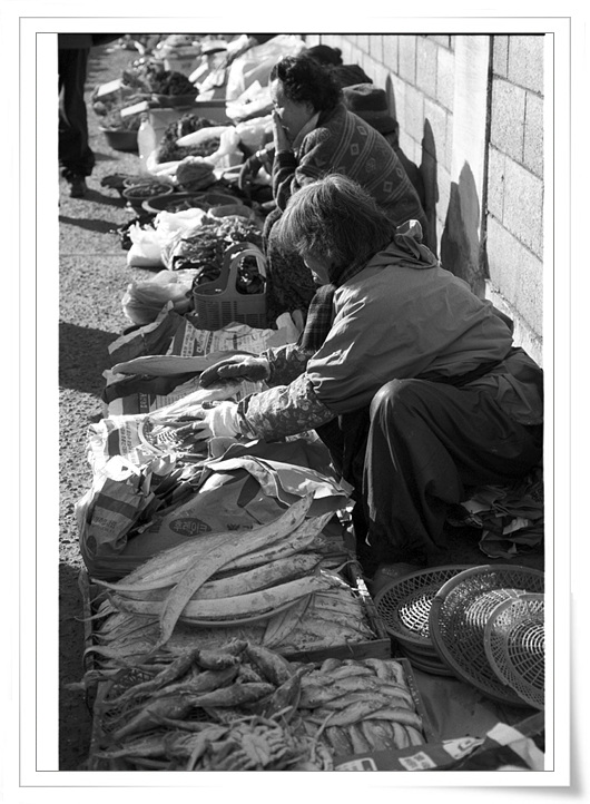 어렸을때 아파트 단지 내에서도 할머니들이 저렇게 좌상을 펼쳐 놓으시고 텃밭 채소 같은 것들을 파셨던 풍경이 기억납니다. 마음이나마 따뜻함을 나눈다면 덜 춥겠다는 생각이 듭니다.