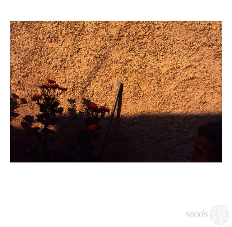 - 설명처마 아래의 시드는 꽃과 가을의 황혼햇살