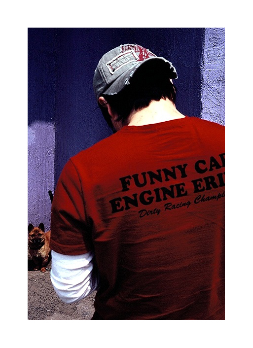 강렬한 색의 셔츠가 인상적입니다.