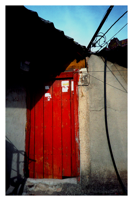 푸른 하늘을 비스듬이 머리에 얹고 서있는 붉은 문이 너무 멋져보입니다~