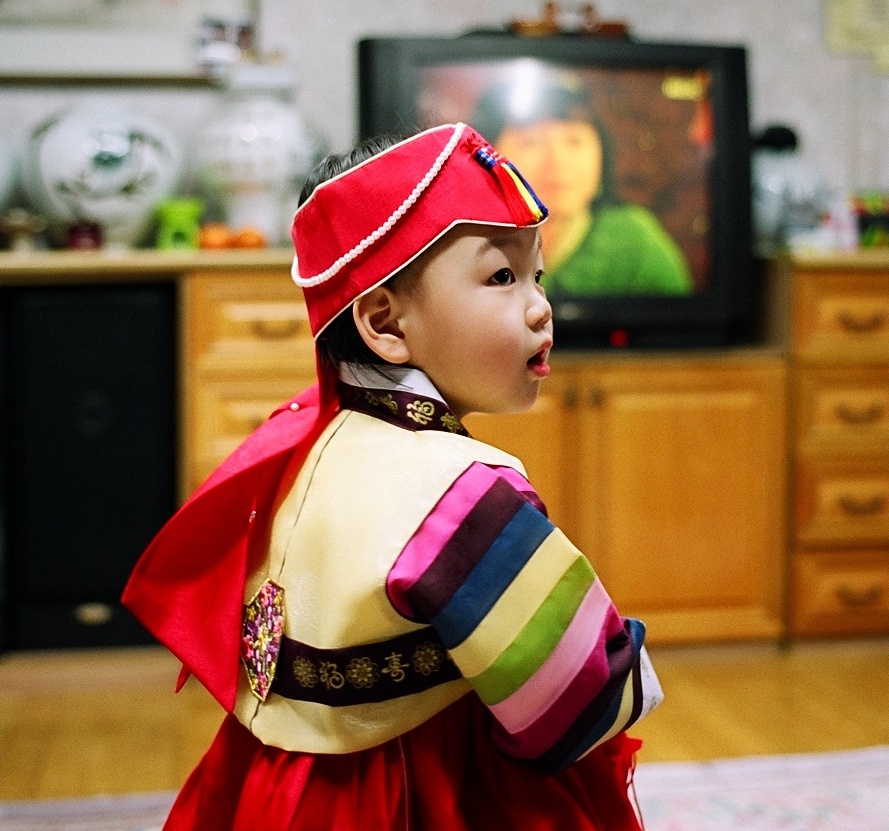 설빔의 색깔이 아이의 얼굴과 어울립니다.
