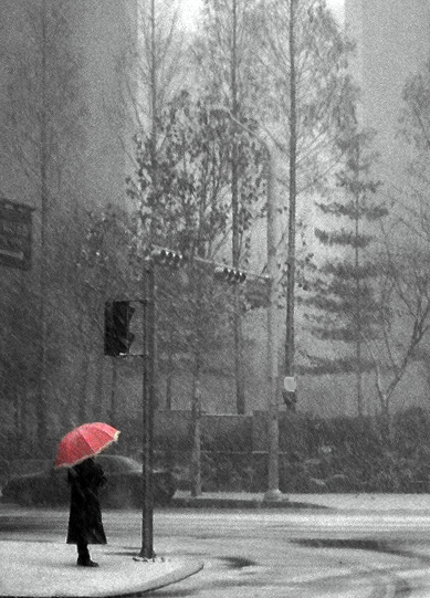 영화속 한 장면... 어떻게 우산만 빨갛게 나올 수 있을까? 한참 생각합니다.