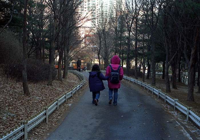 재미있게 얘기하며 지나가는 자매의 옷 색깔이 이뻐서 뒤따라가며 찍은 사진.