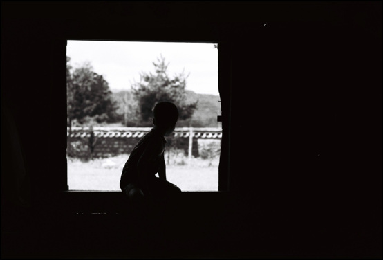 - 설명어느 한옥 마루에 앉아 있는