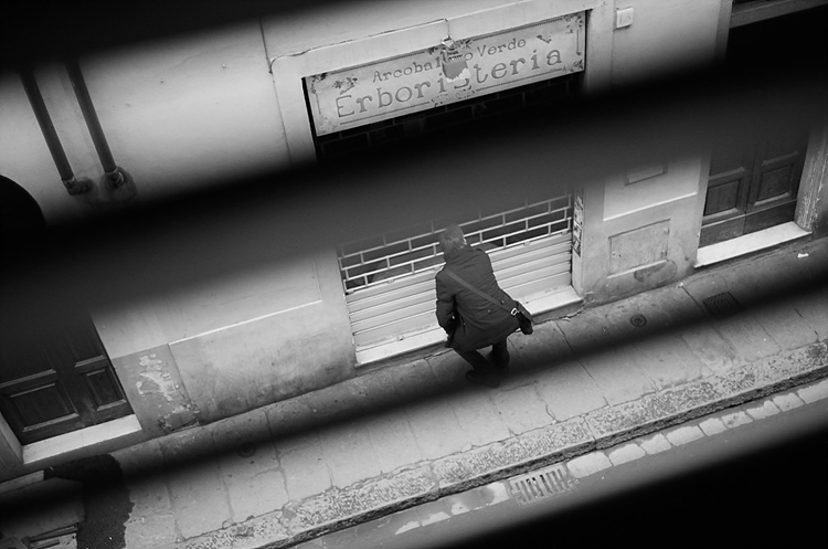 - 설명이탈리아 피렌체.숙소의 블라인드 처진 창가에서 내려다본 골목.