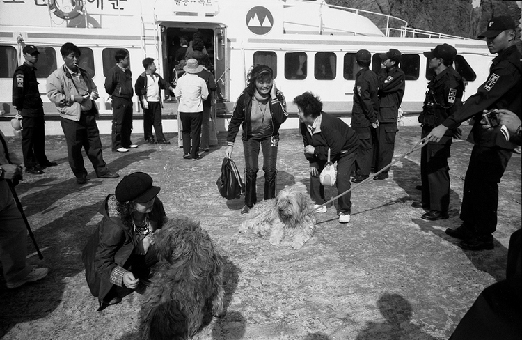 - 설명울릉도에서 2시간반의 여정끝에 독도에 접안하자 독도경비대원들과 함께 마중나와준 "곰이와 몽이" 삽살개남매.