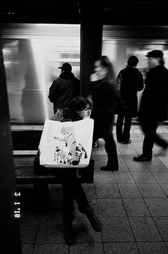 나른한 그녀의 눈빛이 스쳐 지나는 이들의 분주함과 대조되어 보기 좋습니다.