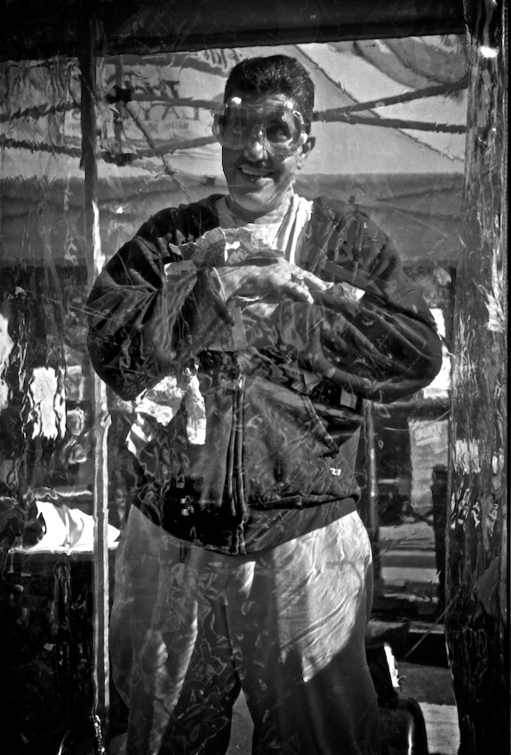 모델의 포즈도, 표정도, 비닐막 빛 무늬도,,,